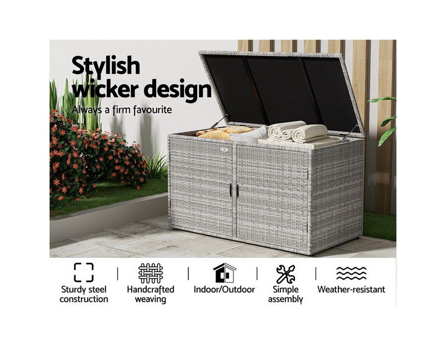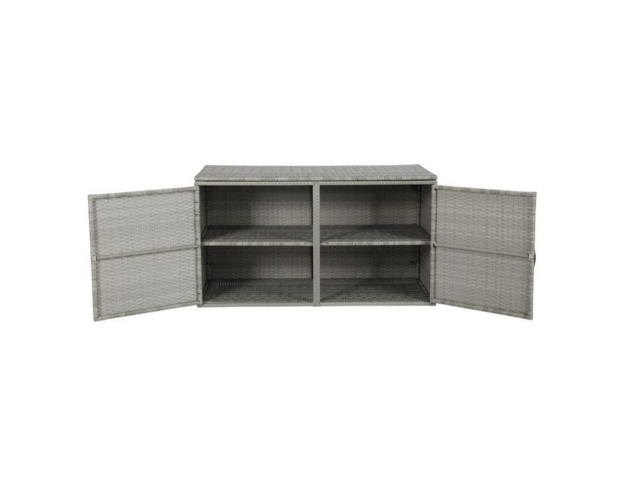 Looking for some extra storage space for your garden or outdoor essentials and tools? has you covered with this stylish and versatile Wicker Outdoor Storage Cabinet. The outdoor cabinet is made from durable handwoven wicker that is UV and weather resistant and boasts a strong steel frame with excellent weight capacity of 60kg per shelf and 90kg on the top cover. It has two layers of inner storage space with two different ways of opening. It flaunts a fantastic 2-in-1 design: you can use it as just a storage cabinet or as a cabinet and side table. It is inherently safe with its wide variety of features including a safe hydraulic hinge convenient rope handles durable anti-rust hinges non-slip foot pads and wall attachments to prevent tipping. Suitable for indoor and outdoor use you can add style and function to anywhere in the home with a Wicker Outdoor Storage Cabinet.