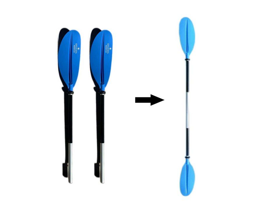 2 Pieces Constructions: Feathered blades design allows for a more efficient stroke. The paddle breaks into 2 pieces with firm and securely fitting ferrule. 3 locking positions for ease of use. The two piece paddle is a great compliment to kayaks canoes and inflatable boats. Easy to carry with and storage makes a great convenience.